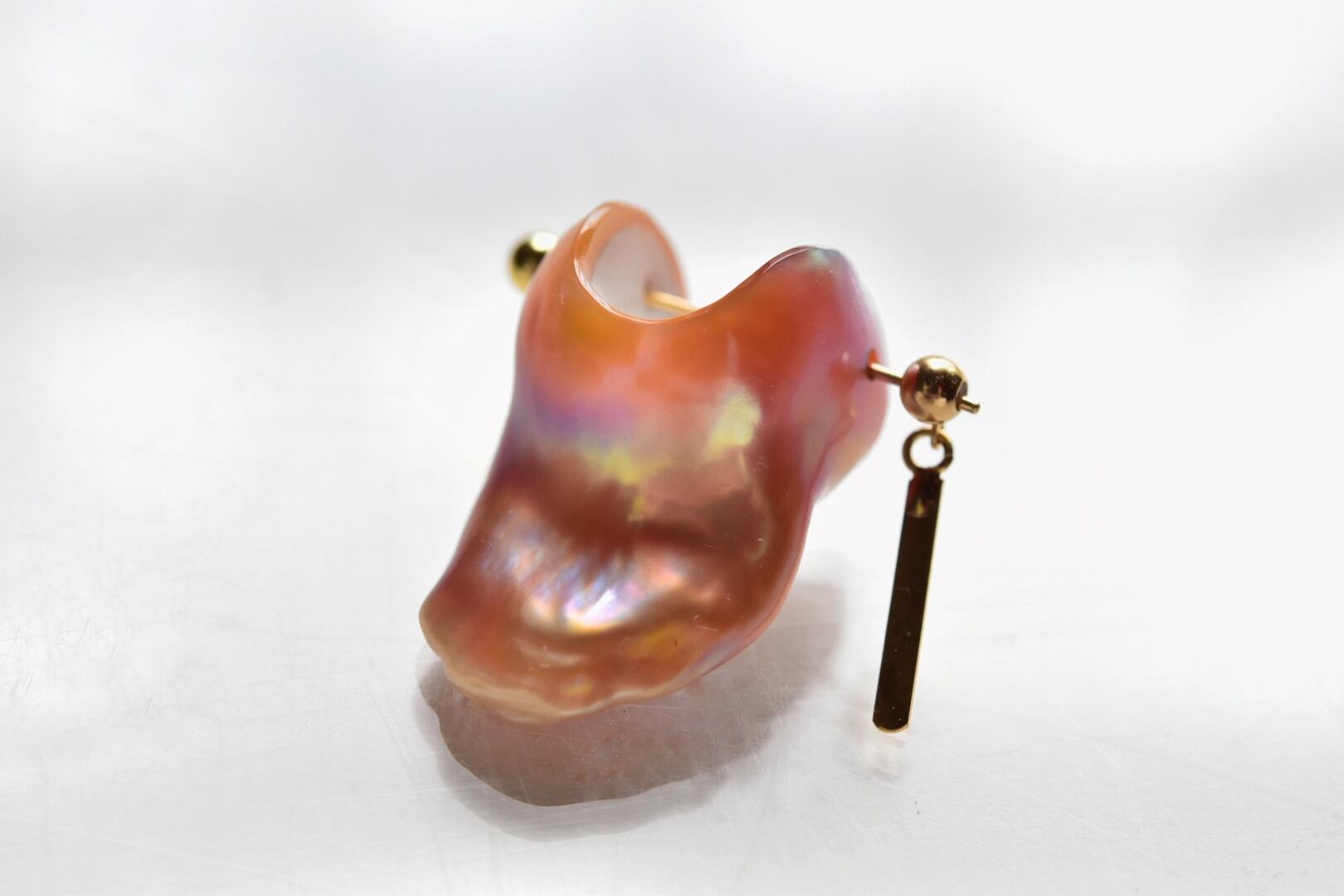 虹色に光る淡水パロックパールのピアス。
