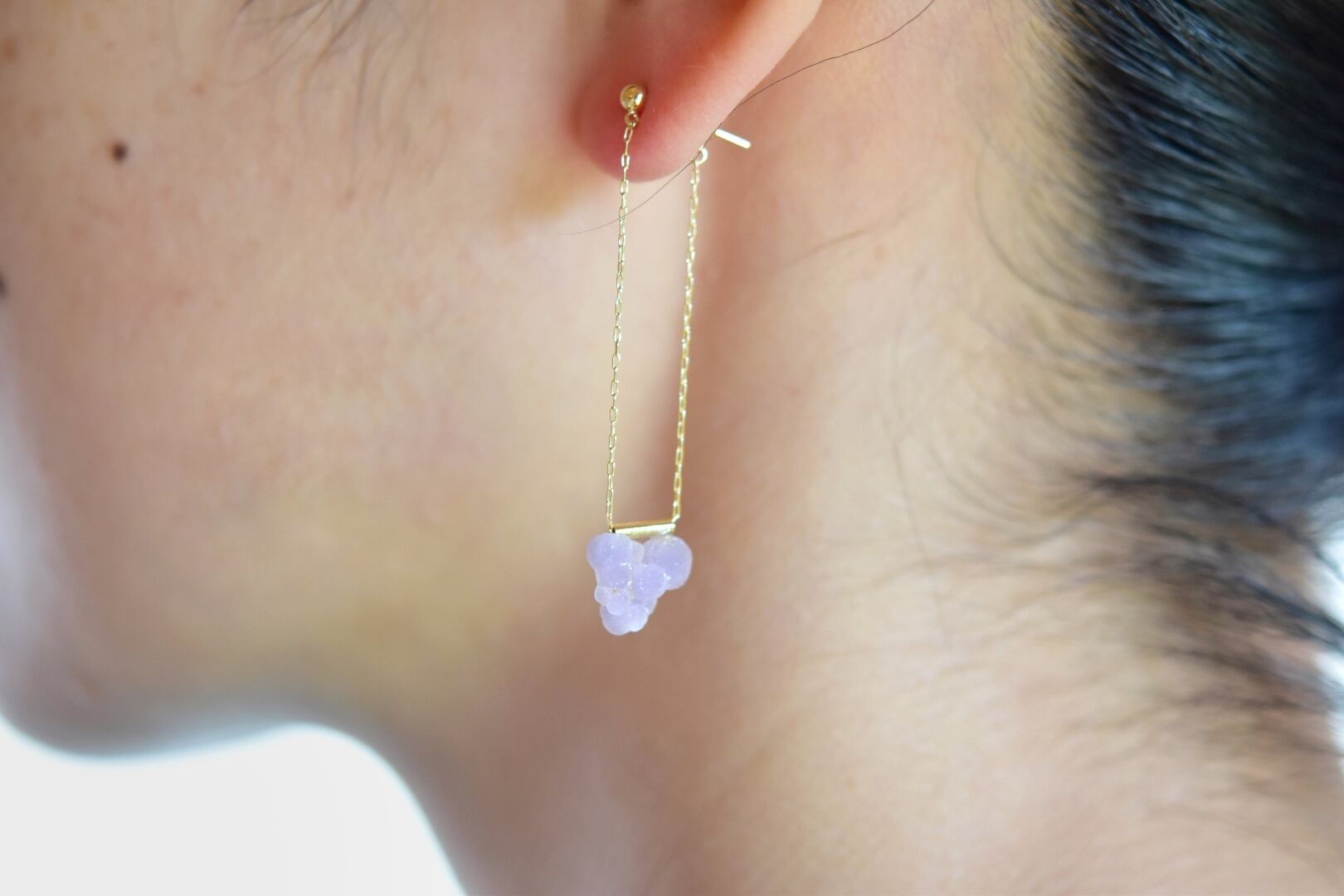 ぽこぽことした丸い結晶がかわいらしい、グレープストーンピアス。