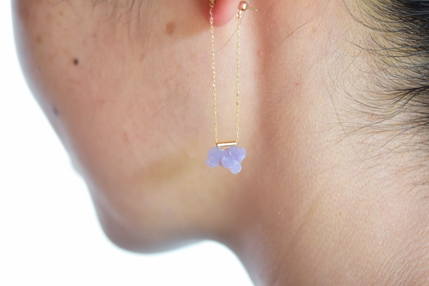 ぽこぽことした丸い結晶がかわいらしい、グレープストーンピアス。