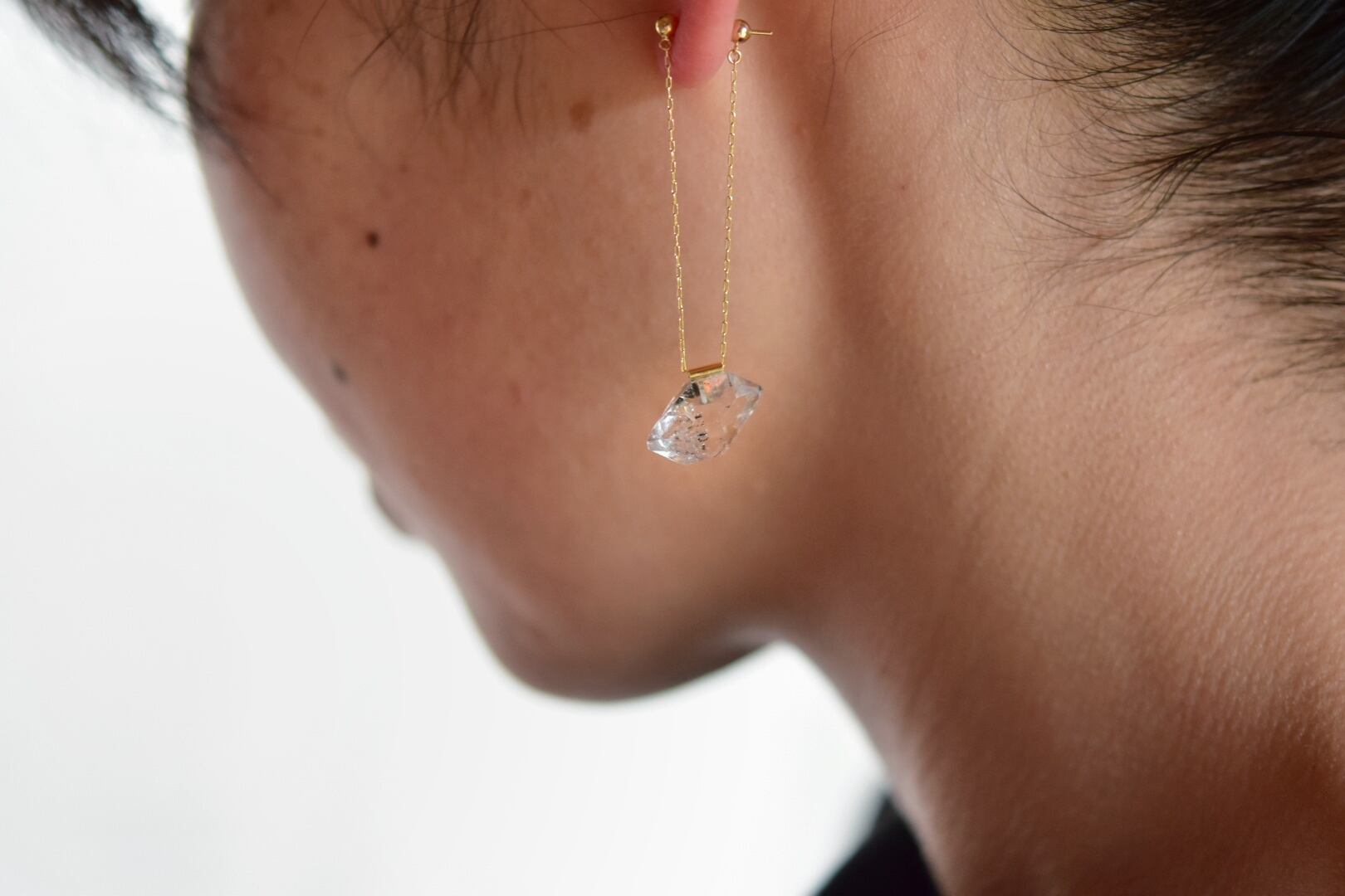 光を集めて輝く、ダイアモンドクオーツのピアス。