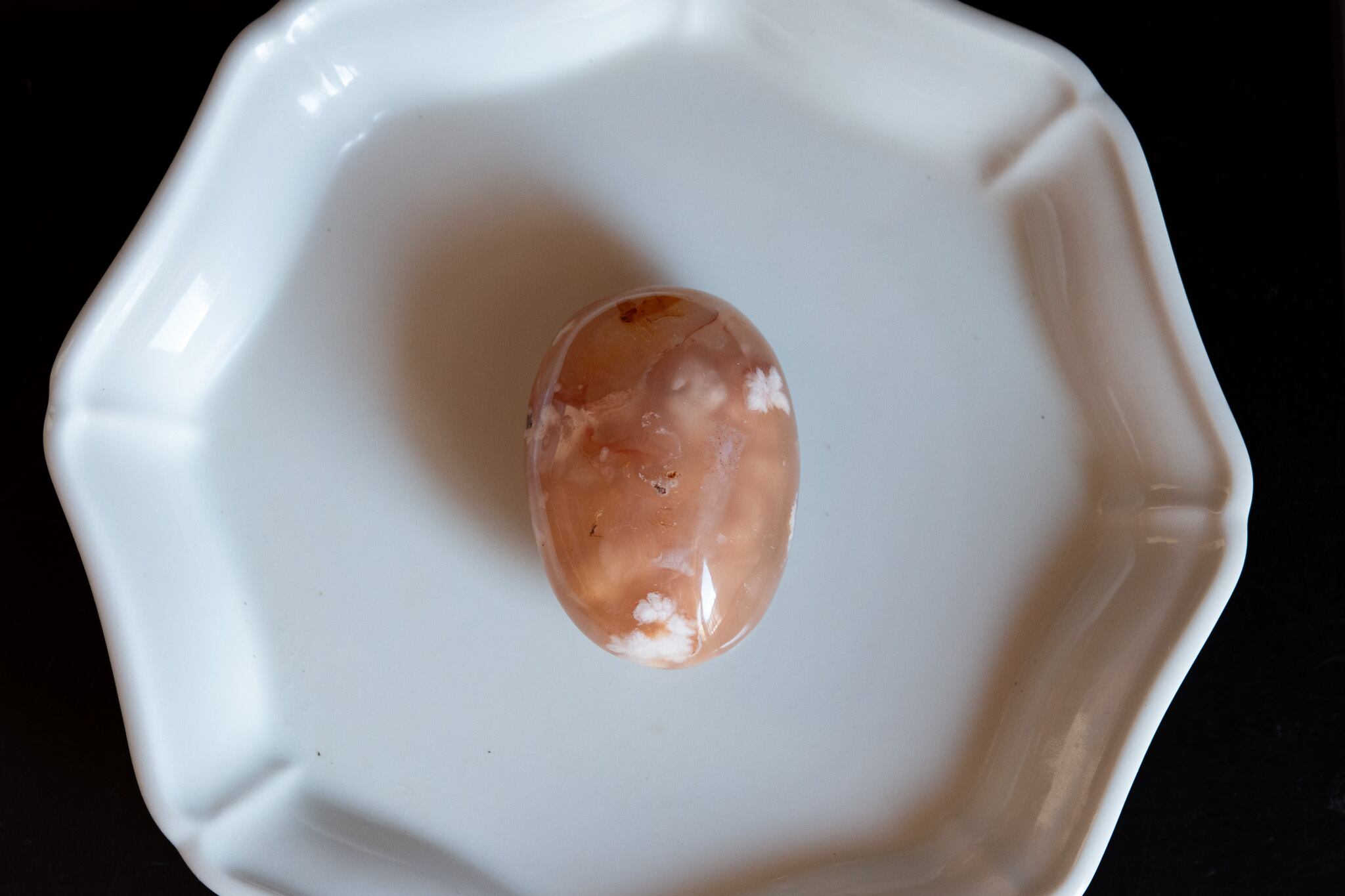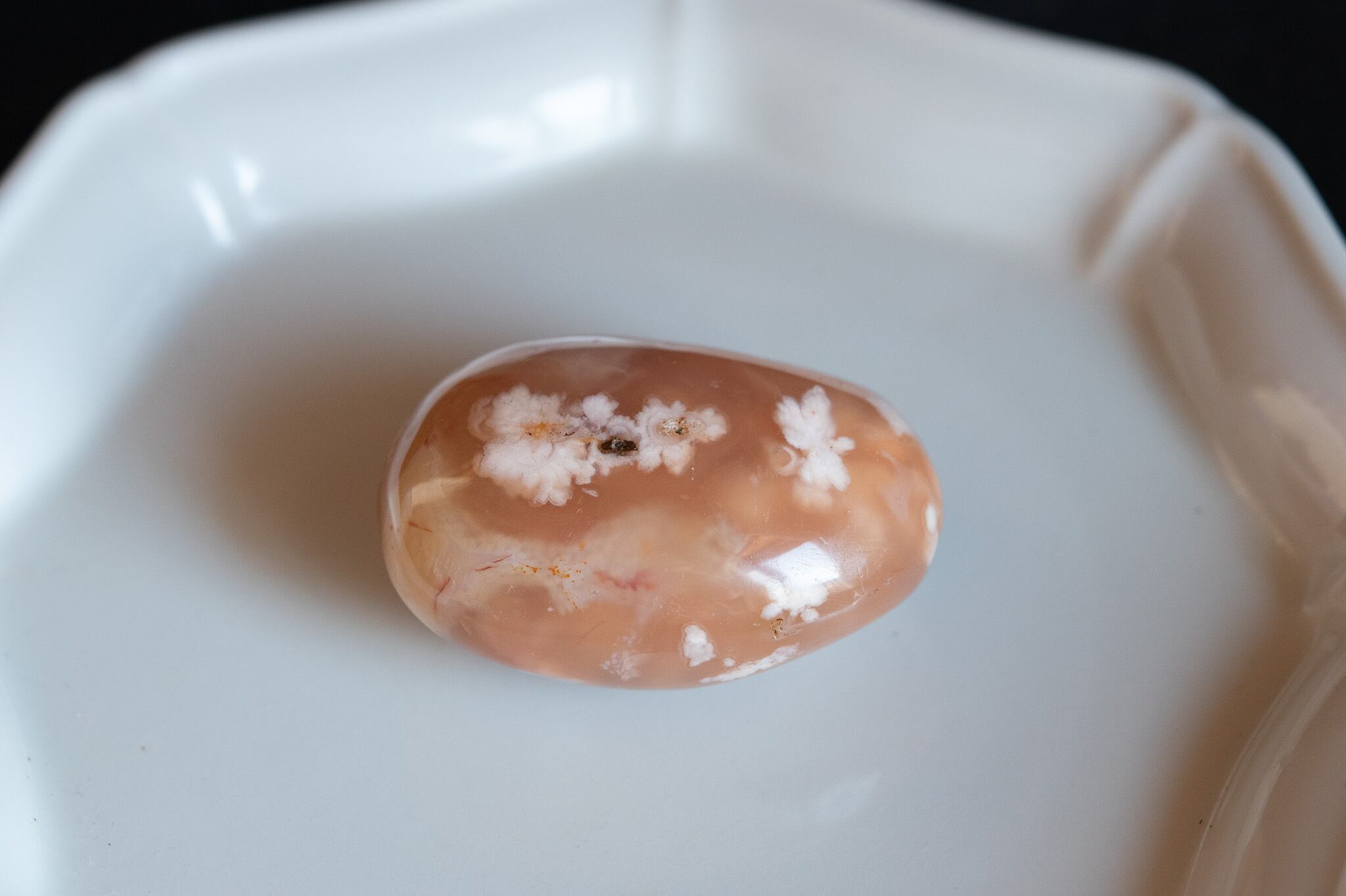 花が咲き誇っているような模様に心が和む、フラワーアゲートのパームストーン。