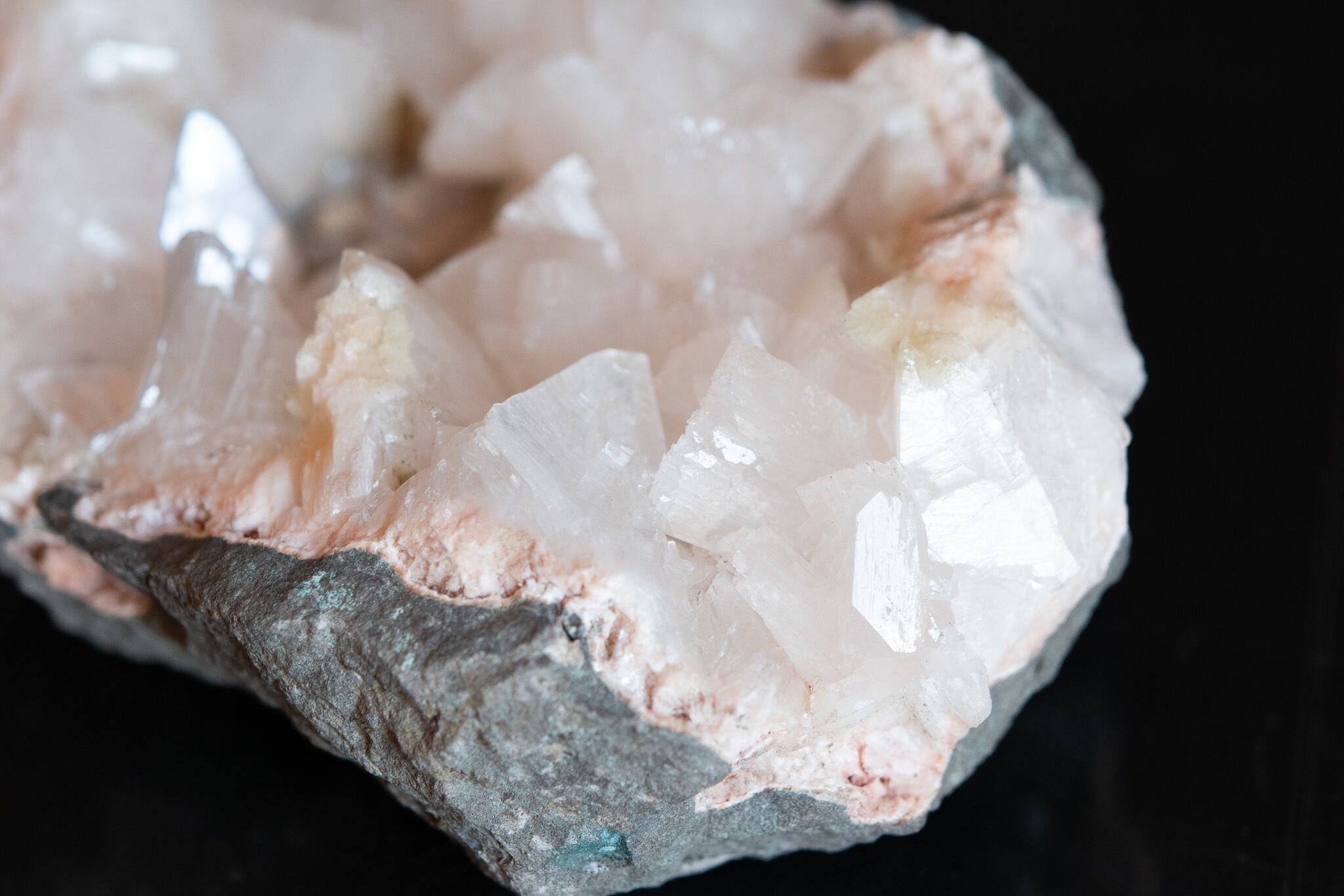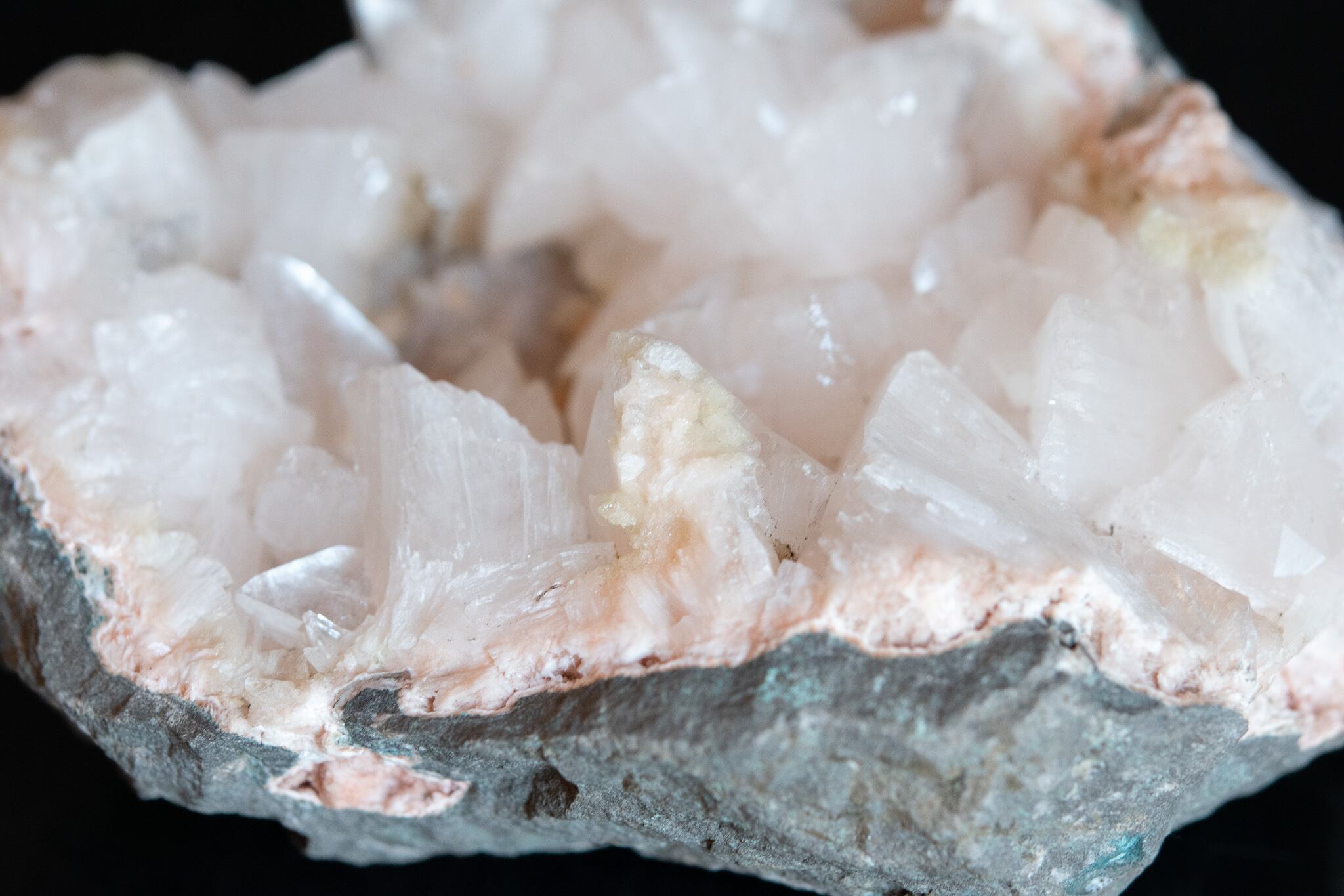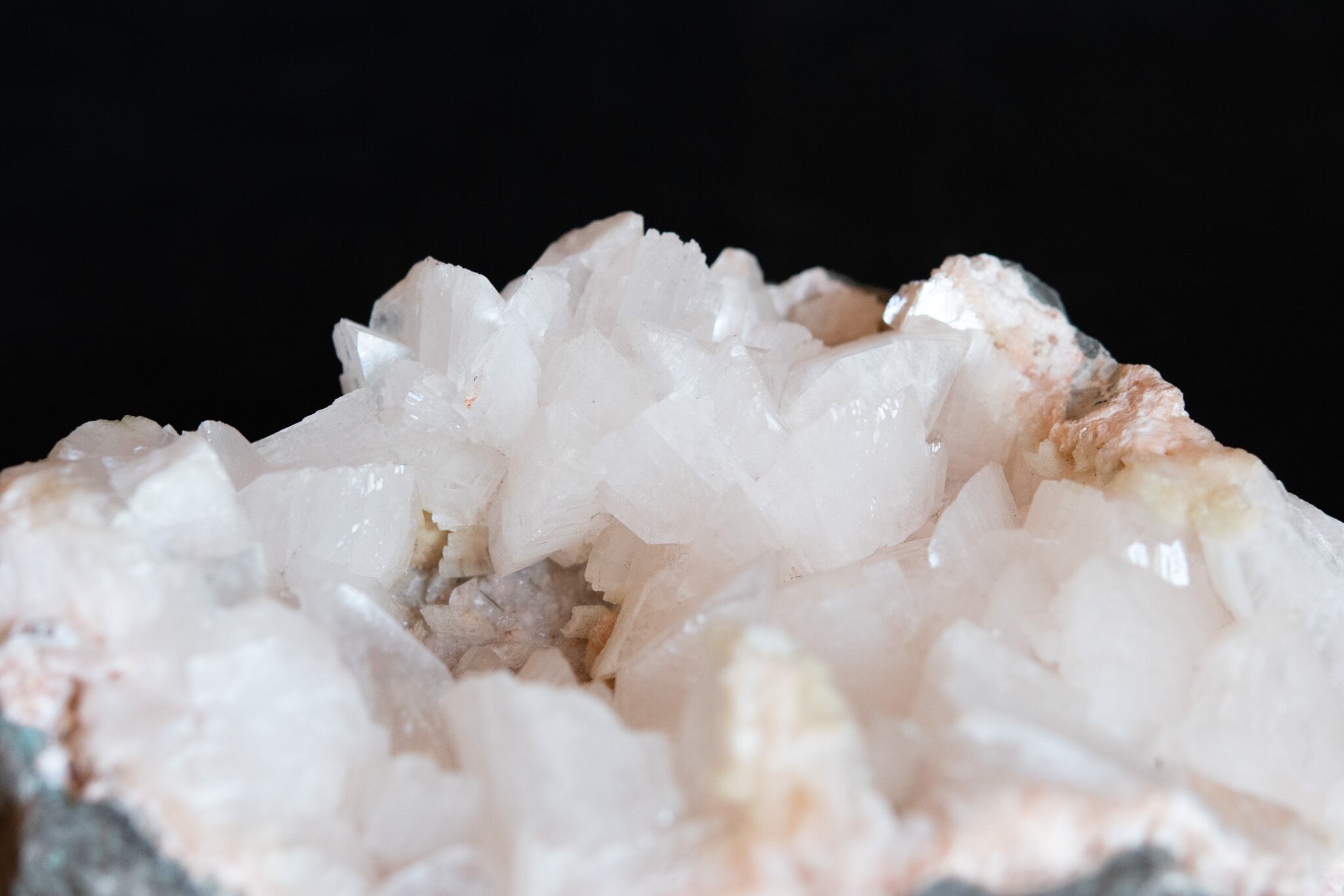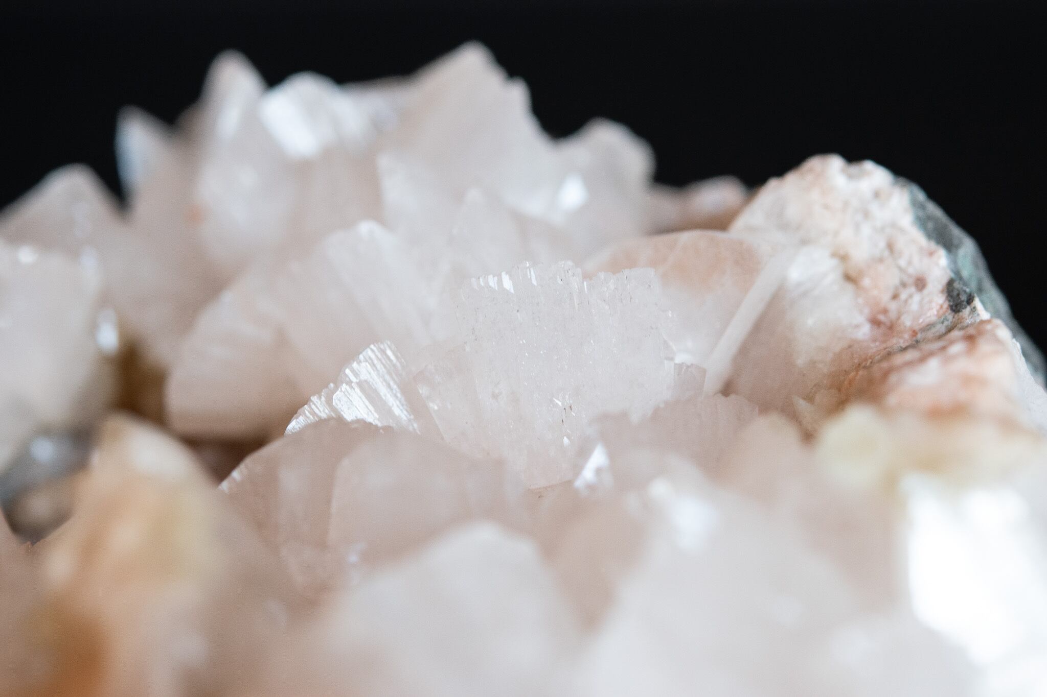 真珠のような光沢が美しいヒューランダイトのクラスター。